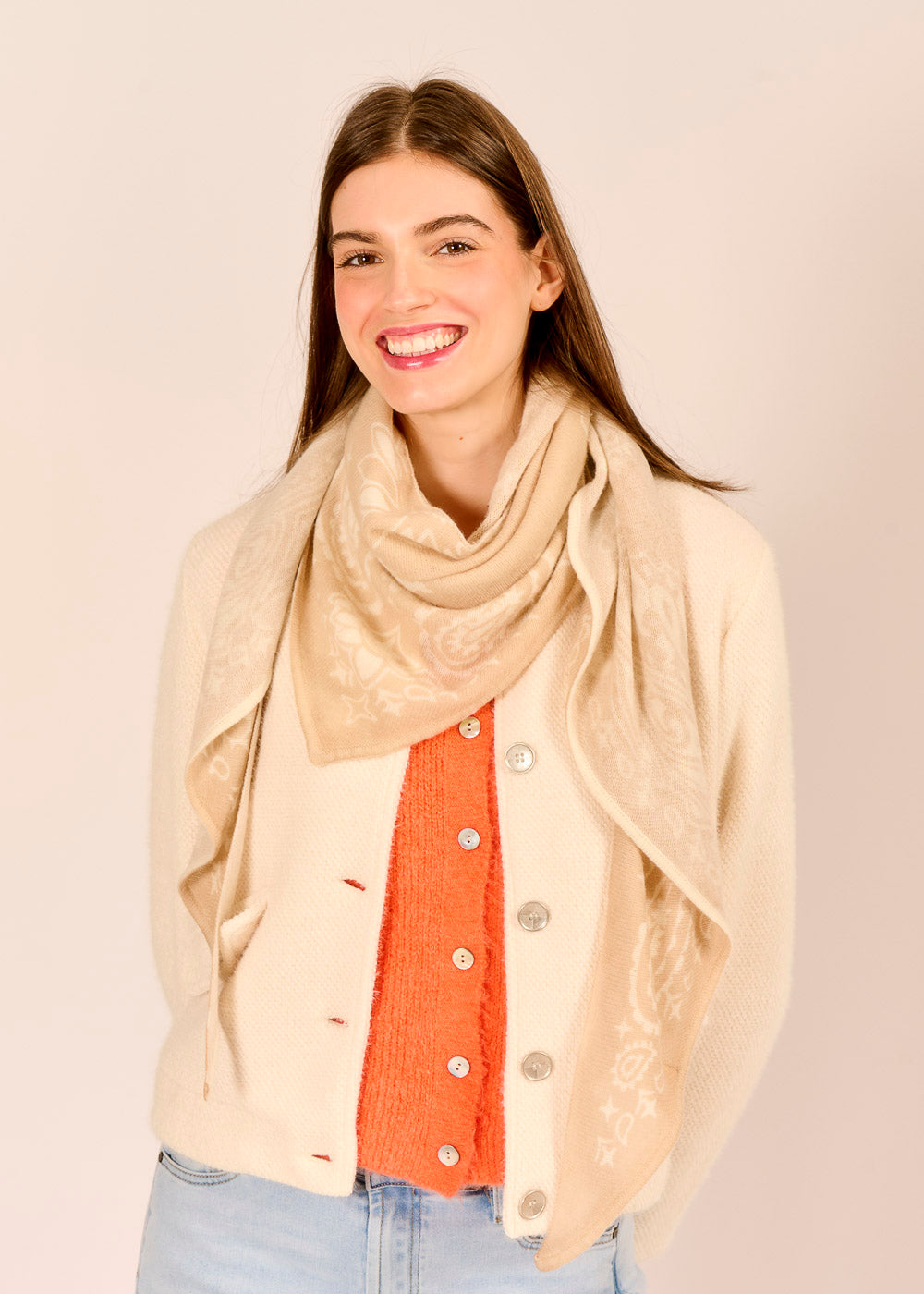 Das Kaschmirtuch von VIAMORI in sanftem Beige erinnert an feine Sandstrände der italienischen Riviera. Weich und wärmend, legt es sich sanft um Schultern und Hals. Das warme Beige lässt sich mühelos kombinieren.