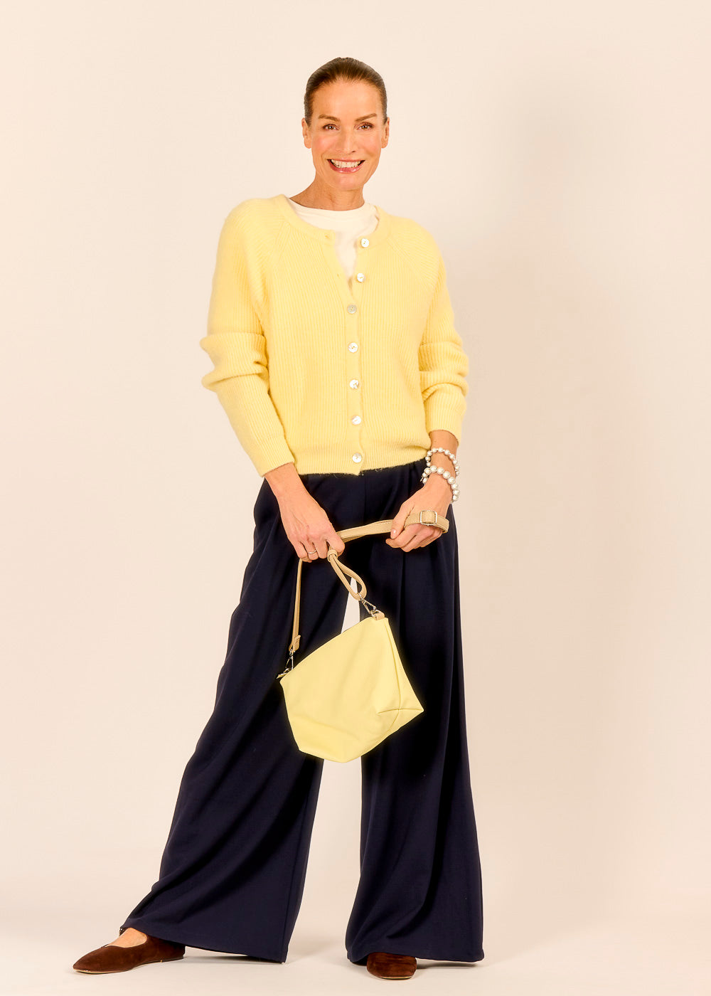 Lass dich von italienischer Leichtigkeit umhüllen, denn der vanillefarbene Bomberino mit Alpakawolle spendet kuschelige Wärme. Ob lässig zur Jeans oder stilvoll zur Pantalone – dieser Bomberino lässt dich strahlen.